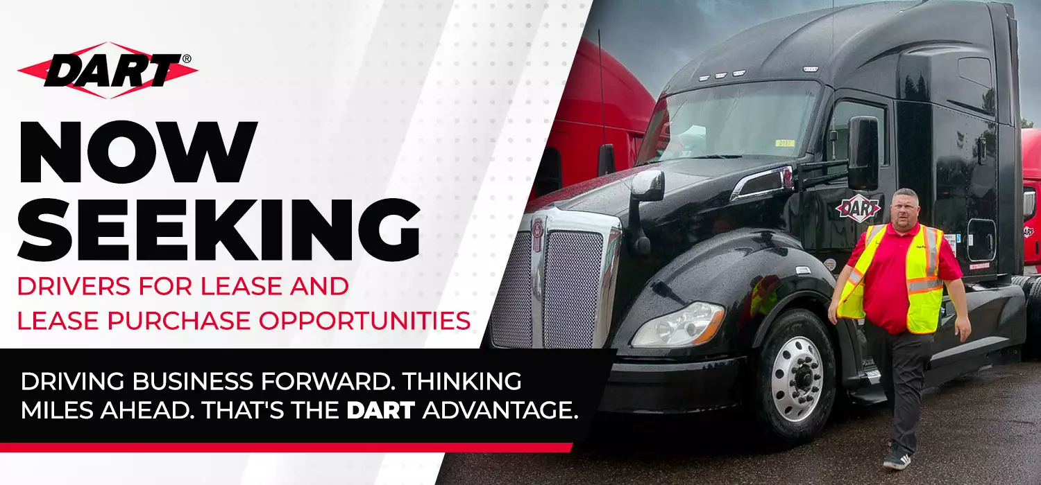 Whether you own your own truck or looking for a worry-free ride, Dart has the opportunity for you! Dart has been a great place for Owner Operators since 1934. We've designed our company to meet your business needs. It’s your dream – let’s make it happen! There is no better time than now to take advantage of the business opportunities at Dart!