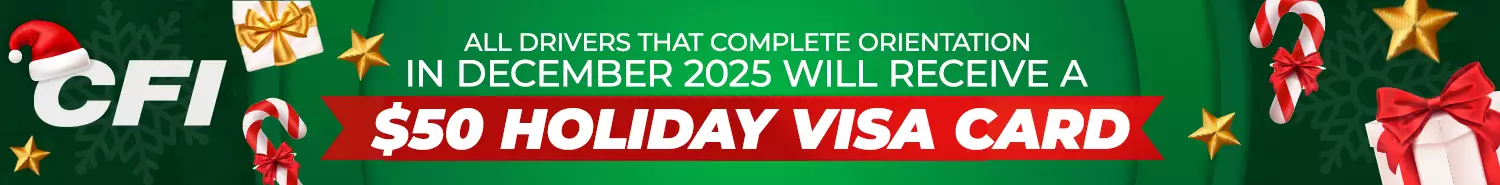 Peace of Mind with Layover Pay: At CFI, we strive to provide our CDL-A Drivers with consistent miles. In the rare event of a layover, you'll receive $125 after the first 24 hours and $125 for each additional 24-hour period, ensuring your time is always valued.