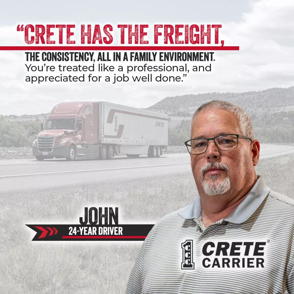 For over 50 years, Crete Carrier has grown to one of the nation’s largest, privately held trucking companies. Along with sister company, Shaffer Trucking, and wholly-owned subsidiary, Hunt Transportation, Crete Carrier Corporation operates as a truckload and flatbed carrier for virtually any commodity. At Crete Carrier, we are dedicated to our drivers. As a result, we have one of the lowest turnover rates in the industry with drivers staying with us three times longer than they do with our competition. We take pride in our relationship with our drivers. Our professional drivers are among the best on the highways, meeting standards far exceeding those required by the U.S. Department of Transportation.