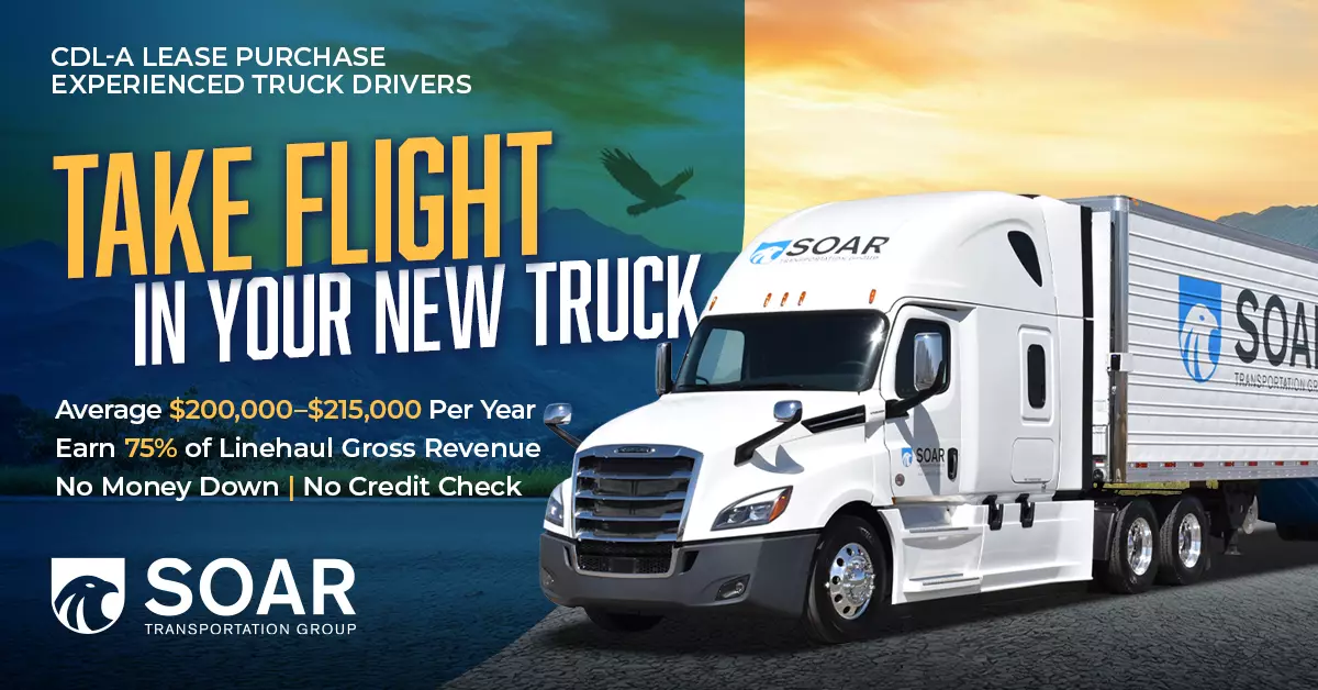 You’ll fly high indeed with an average $200,000–$215,000 per year, a pay increase that puts the driving business of your dreams closer than ever. In addition to outstanding pay, our lease-purchase program also offers the support every new truck owner needs to succeed. Seize the dream of driving independence and take flight in your new truck today with SOAR.