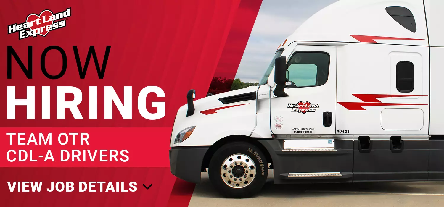 Heartland Express is an award-winning industry leader for on-time service. We hire the best truck drivers in the industry. Our truck drivers are some of safest, most experienced drivers on the road today. We're looking for drivers to join our fleet to help us service some of the top shippers in America. Join our team and know you're amongst the best the industry has to offer!